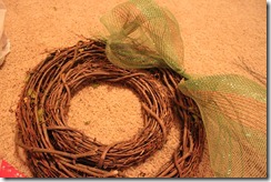 First of all, you’ll need some sort of wreath form. They make these fancy ones that look like a rounded wire hanger with wired branches on them especially for deco mesh, but I can’t ever find those in the stores. So instead, I tried it out on a grapevine wreath. Two precisely. If you’re going to use the grapevine method, you’ll need two grapevine wreaths, one slightly smaller than the first, so that they fit inside one another like this: